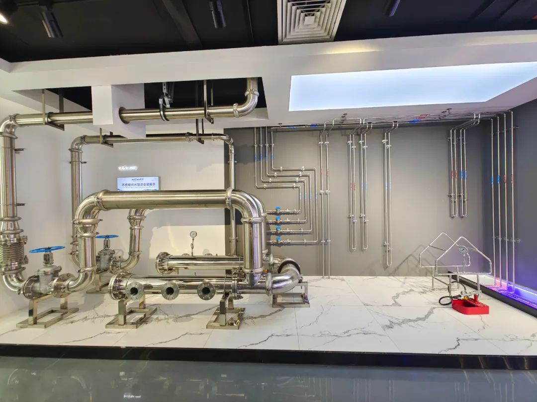 管道場景應用展廳是運營中心的核心亮點,展廳將商品房不銹鋼管道系統、不銹鋼管道循環活水系統、全屋健康用水系統專業化與系統化的展示,讓我們的產品應用場景化的體現出來。